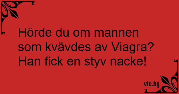 Q: How did the first man die from using Viagra? A: The tablet got stuck in his throat and he died from a stiff neck.