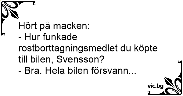 - Hur funkade rostborttagningsmedlet du köpte till bilen, Svensson?
