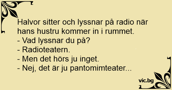 Halvor sitter och lyssnar på radio när hans hustru kommer in i rummet.