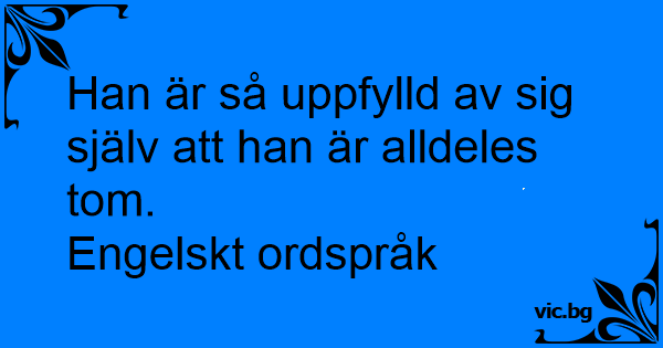 Han är så uppfylld av sig själv att han är alldeles tom.