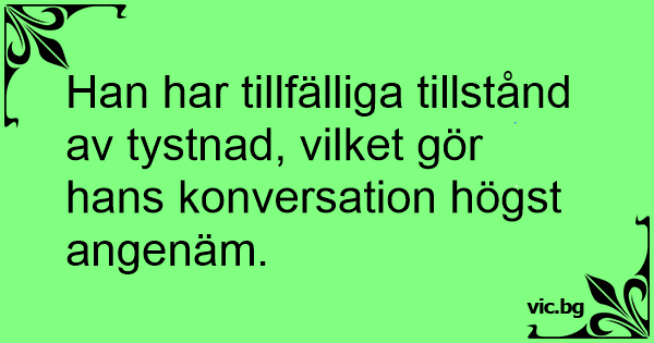 Han har tillfälliga tillstånd av tystnad, vilket gör hans konversation högst angenäm.