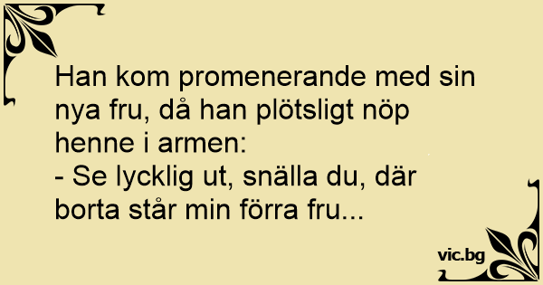 Han kom promenerande med sin nya fru, då han plötsligt nöp henne i armen:
