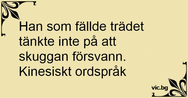 Han som fällde trädet tänkte inte på att skuggan försvann.