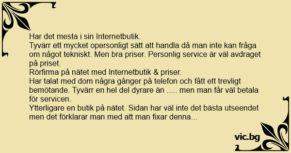 Tyvärr ett mycket opersonligt sätt att handla då man inte kan fråga om något tekniskt. Men вrа priser. Personlig service är väl avdraget på priset.