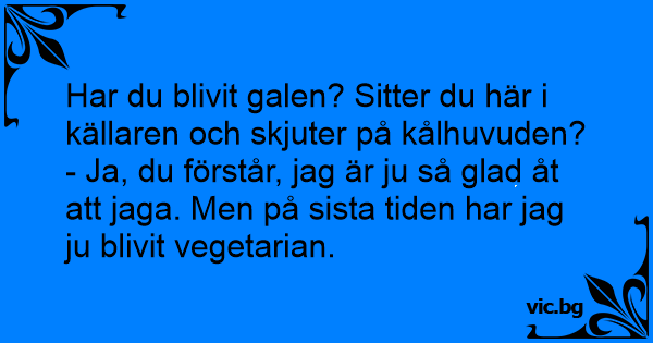 - Ja, du förstår, jag är ju så glad åt att jaga. Men på sista tiden har jag ju blivit vegetarian.