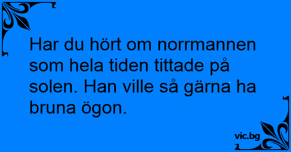 Har du hört om norrmannen som hela tiden tittade på solen. Han ville så gärna ha bruna ögon.