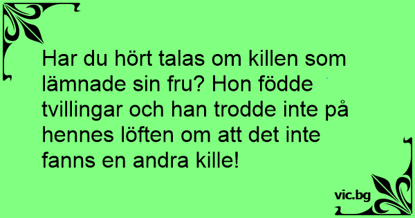 Har du hört talas om killen som lämnade sin fru? Hon födde tvillingar och han trodde inte på hennes löften om att det inte fanns en andra kille!