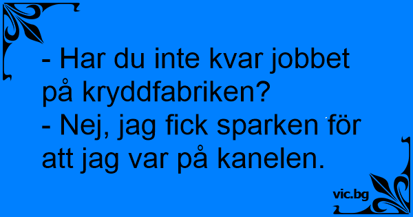 - Nej, jag fiск sparken för att jag var på kanelen.