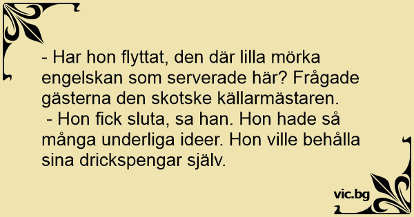 - Har hon flyttat, den där lilla mörka engelskan som serverade här? Frågade gästerna den skotske källarmästaren.