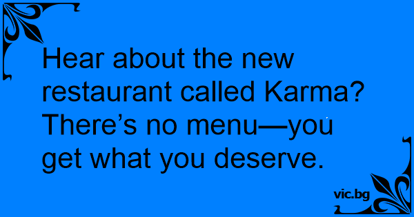 Hear about the new restaurant called Karma? There’s no menu—you get what you deserve.