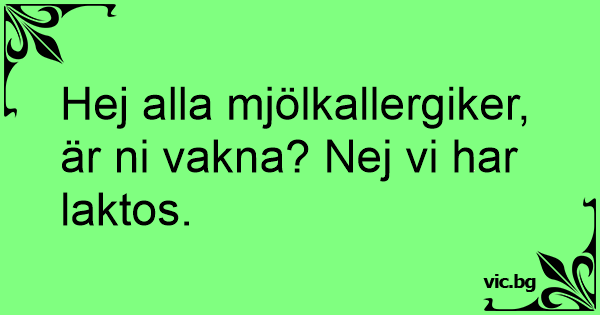 Hej alla mjölkallergiker, är ni vakna? Nej vi har laktos.