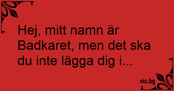 Hej, mitt namn är Badkaret, men det ska du inte lägga dig i...