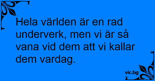 Hela världen är en rad underverk, men vi är så vana vid dem att vi kallar dem vardag.