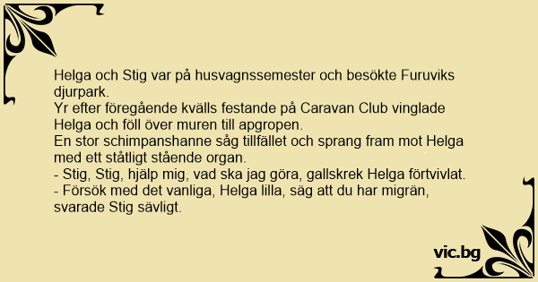 - Stig, Stig, hjälp mig, vad ska jag göra, gallskrek Helga förtvivlat.