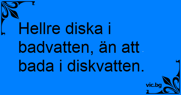 Hellre diska i badvatten, än att bada i diskvatten.