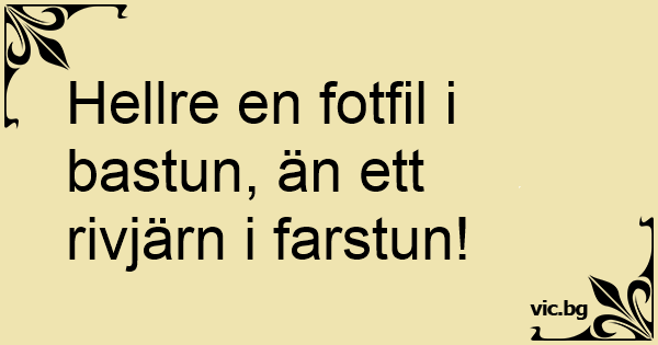 Hellre en fotfil i bastun, än ett rivjärn i farstun!