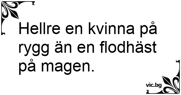 Hellre en kvinna på rygg än en flodhäst på magen.