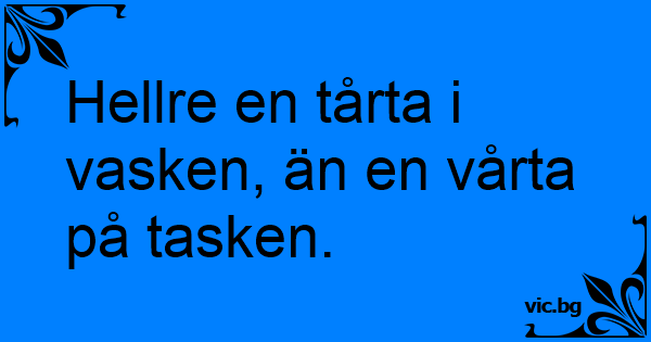 Hellre en tårta i vasken, än en vårta på tasken.