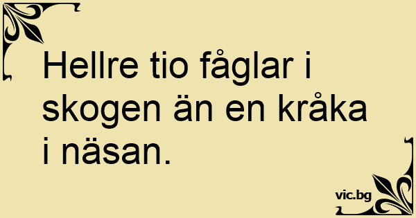 Hellre tio fåglar i skogen än en kråka i näsan.