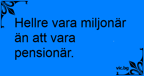 Hellre vara miljonär än att vara pensionär.