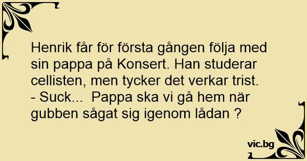 Henrik får för första gången följa med sin pappa på Konsert. Han studerar cellisten, men tycker det verkar trist.