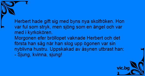 Herbert hade gift sig med byns nya skolfröken. Hon var ful som stryk, men sjöng som en ängel och var med i kyrkokören.