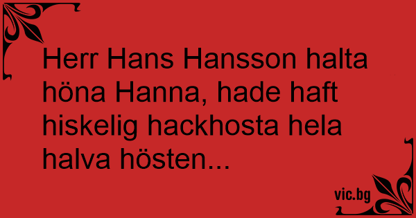 Herr Hans Hansson halta höna Hanna, hade haft hiskelig hackhosta hela halva hösten...