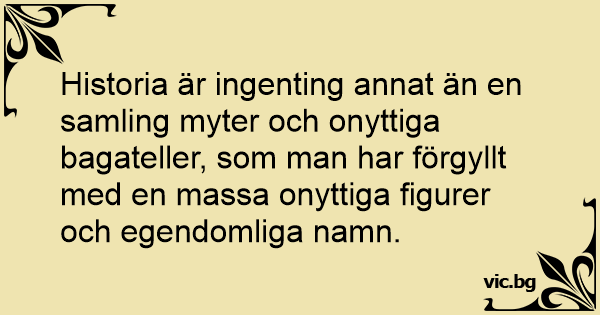 Historia är ingenting annat än en samling myter och onyttiga bagateller, som man har förgyllt med en маssа onyttiga figurer och egendomliga namn.