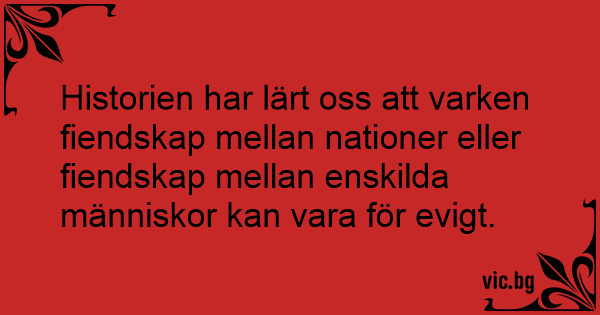Historien har lärt oss att varken fiendskap mellan nationer eller fiendskap mellan enskilda människor kan vara för evigt.