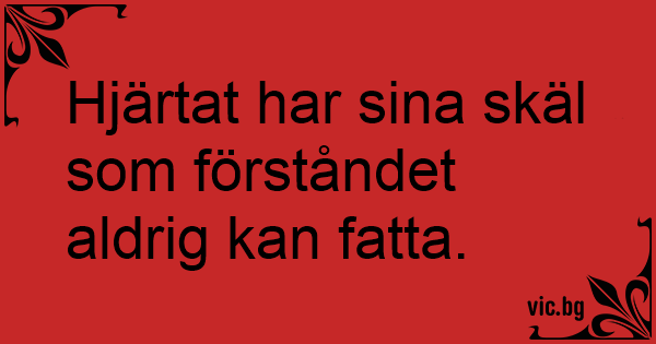 Hjärtat har sina skäl som förståndet aldrig kan fatta.