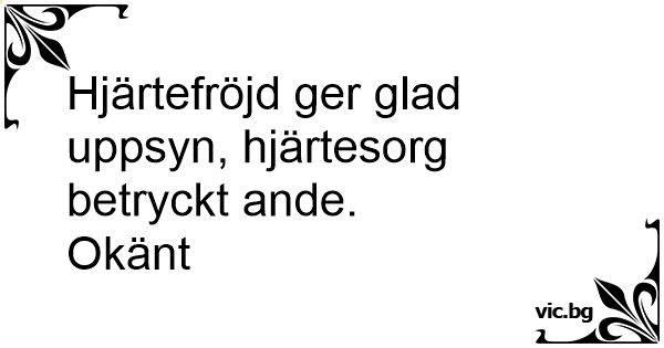 Hjärtefröjd ger glad uppsyn, hjärtesorg betryckt ande.
