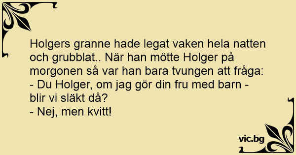 - Du Holger, om jag gör din fru med barn - blir vi släkt då?