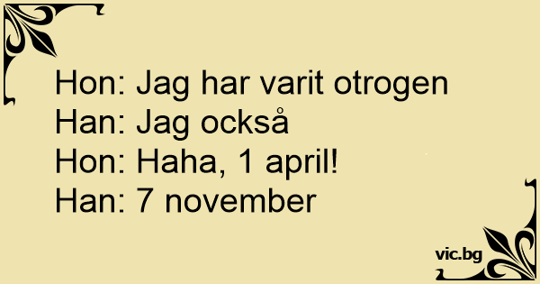 Une nana, un mec : - Chéri, je dois t’avouer une chose… Je t’ai trompé une fois. - Moi aussi… - 1er avril !!!!!!! - 18 août.