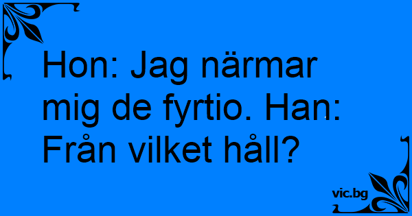 Hon: Jag närmar mig de fyrtio. Han: Från vilket håll?