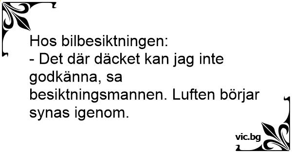 - Det där däcket kan jag inte godkänna, sa besiktningsmannen. Luften börjar synas igenom.
