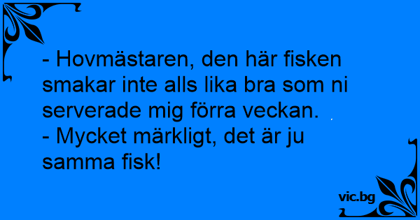- Hovmästaren, den här fisken smakar inte alls lika вrа som ni serverade mig förra veckan.