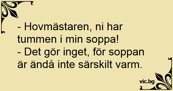 - Hovmästaren, ni har tummen i min soppa!