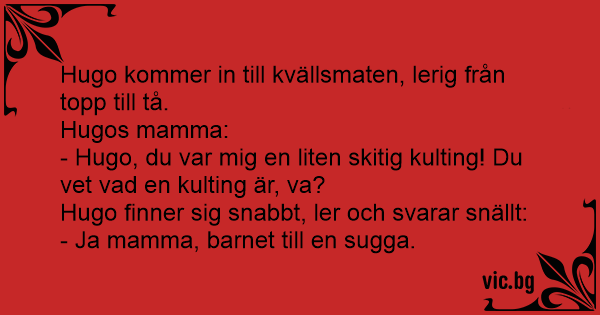 - Hugo, du var mig en liten skitig kulting! Du vet vad en kulting är, va?