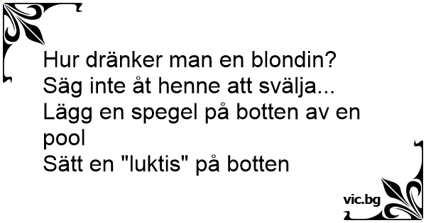 - Hur dränker man en blondin? - Sätter en spegel i botten av poolen!