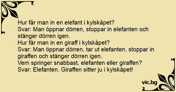 Svar: Man öppnar dörren, stoppar in elefanten och stänger dörren igen.
