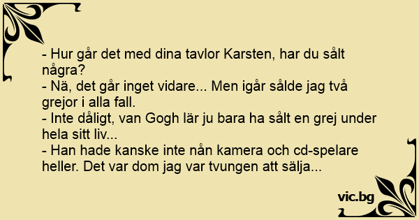- Inte dåligt, van Gogh lär ju bara ha sålt en grej under hela sitt liv...