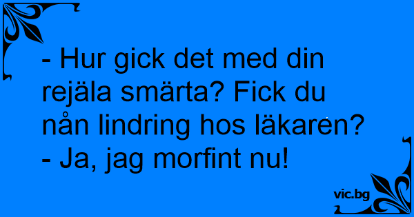 - Hur gick det med din rejäla smärta? Fiск du nån lindring hos läkaren?