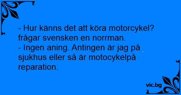- Hur känns det att köra motorcykel? frågar svensken en norrman.