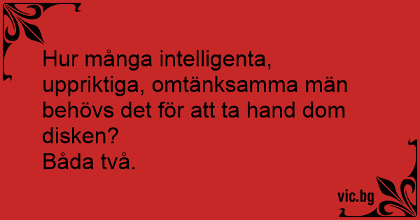 Hur många intelligenta, uppriktiga, omtänksamma män behövs det för att ta hand dom disken?