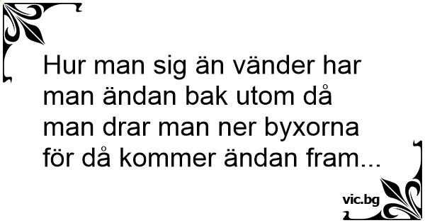 Hur man sig än vänder har man ändan bak utom då man drar man ner byxorna för då kommer ändan fram...