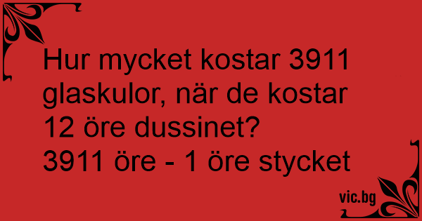 Hur mycket kostar 3911 glaskulor, när de kostar 12 öre dussinet?