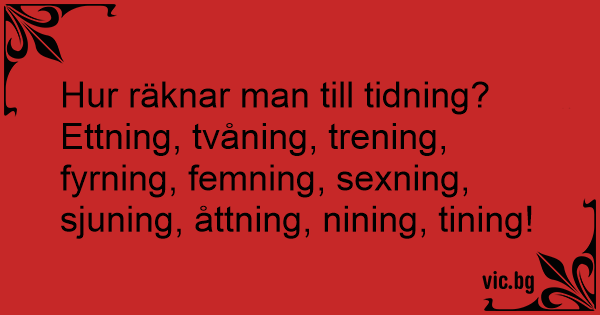Ettning, tvåning, trening, fyrning, femning, sexning, sjuning, åttning, nining, tining!
