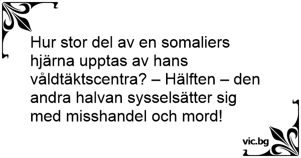 Hur stor del av en somaliers hjärna upptas av hans våldtäktscentra? – Hälften – den andra halvan sysselsätter sig med misshandel och mord!