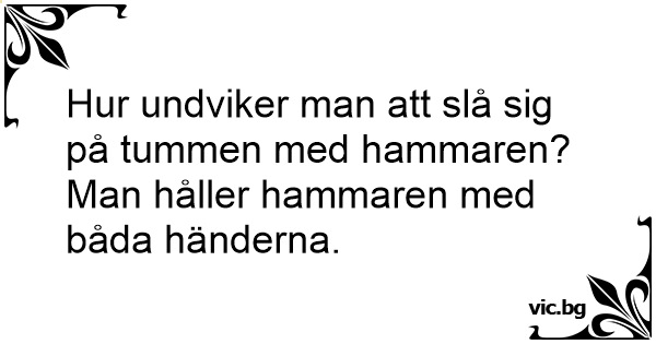 Hur undviker man att slå sig på tummen med hammaren?<br />Man håller hammaren med båda händerna.