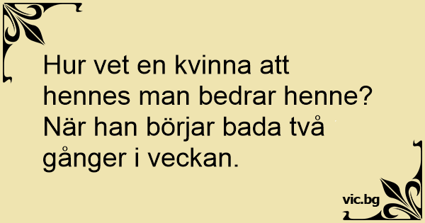 Woran merkt eine Frau, daß ihr Mann sie betrügt? Er fängt an, zweimal die Woche zu baden.